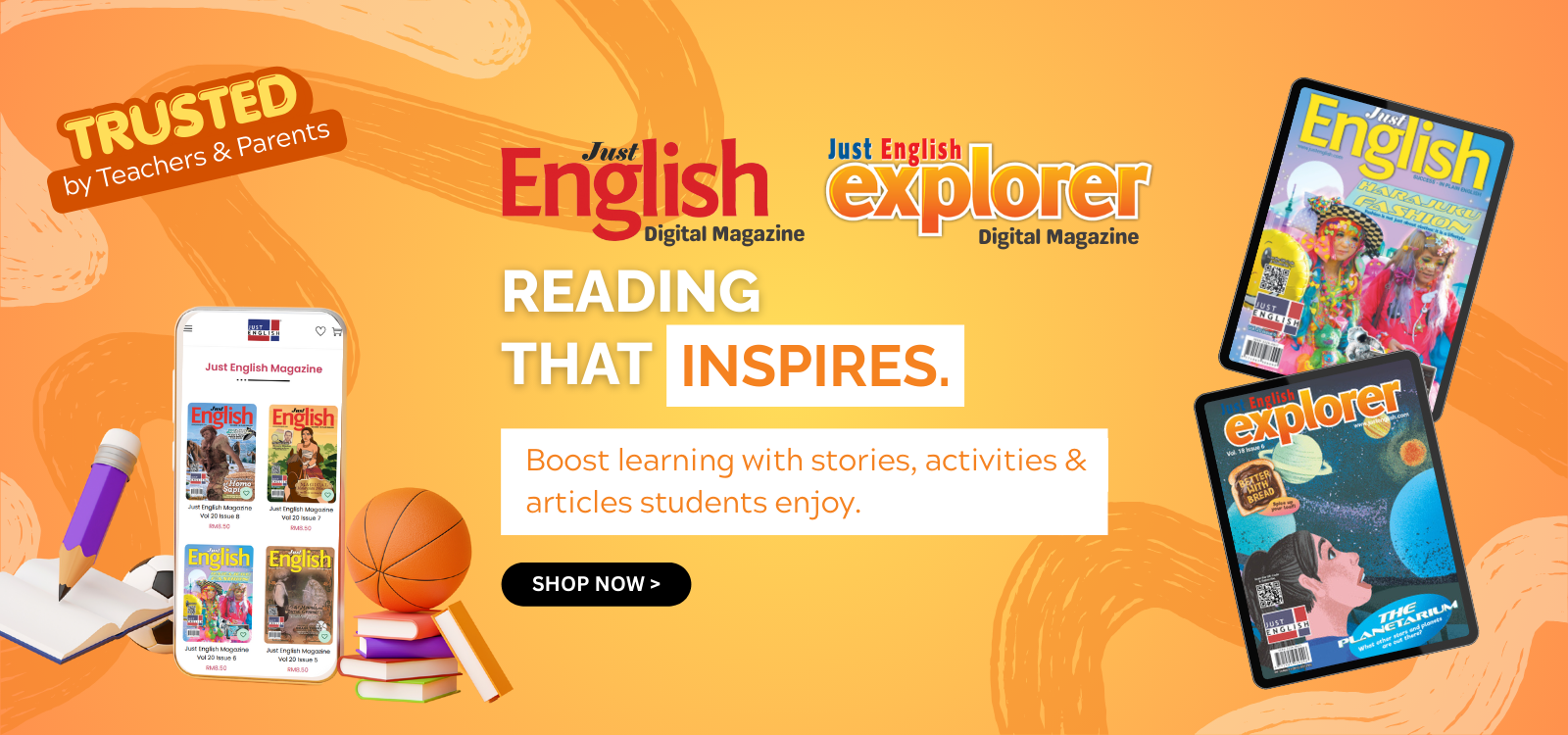 Learning English goes beyond textbooks with Just English magazines. The small size is compact and handy with a variety of interesting articles that students can read on the go and while waiting for the next class or outside the corridor. The level of language is suitable for my diploma students.